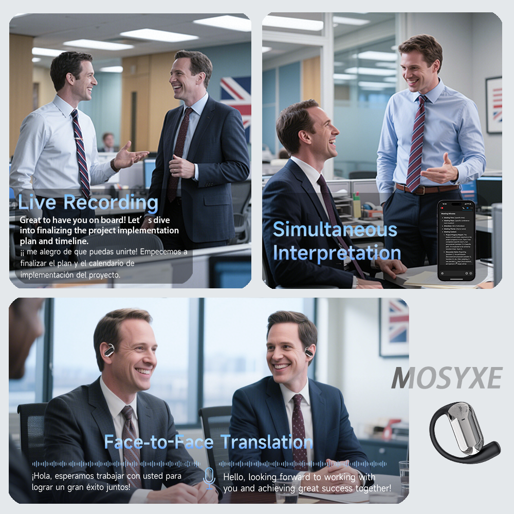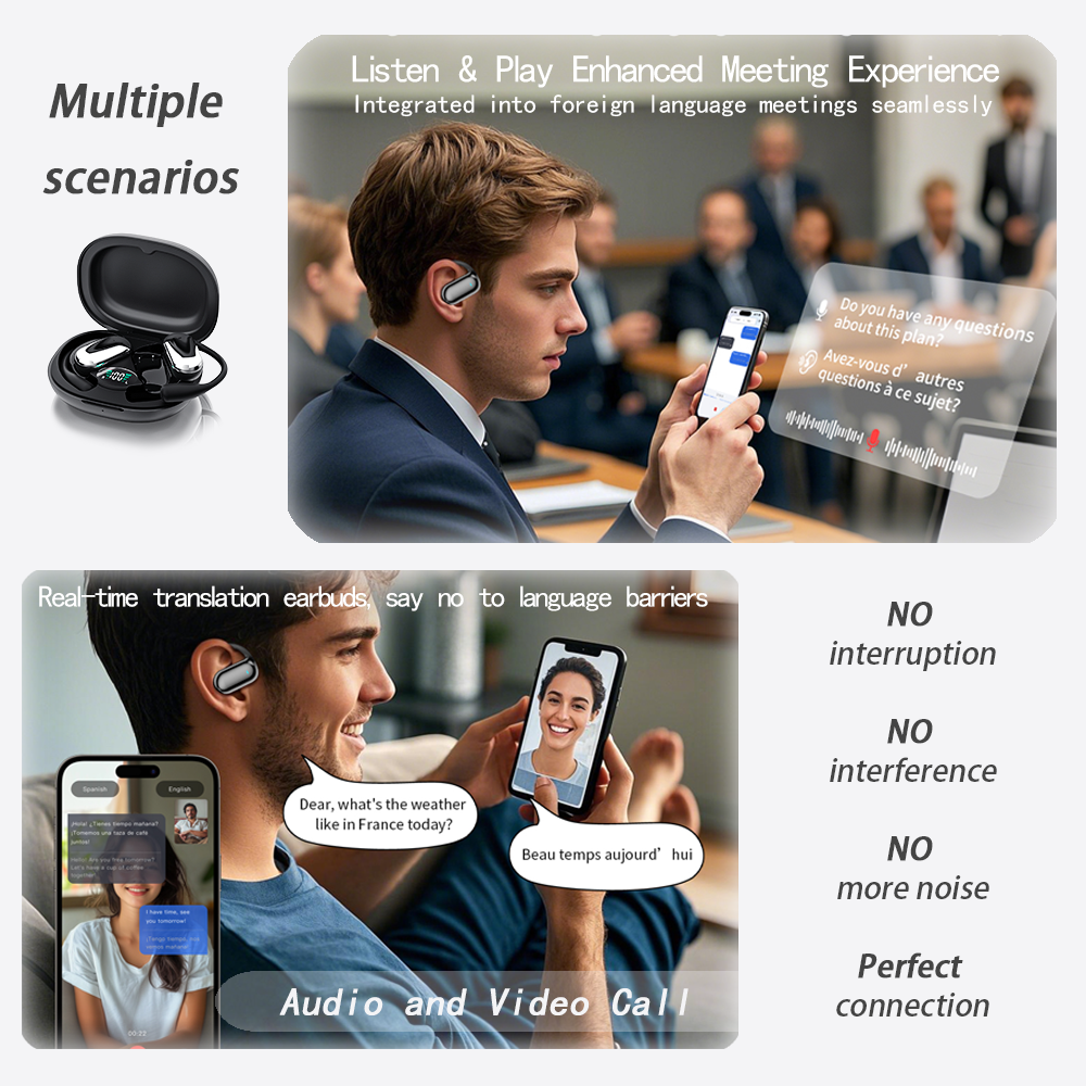 Multi Scenario Adaptability: AI instant translation earphone for meetings perfect for international business, negotiations, overseas travel, and daily conversations, 4in1 wireless translator earphones breaking down language barriers for smooth communication. In any language, any environment, AI instant translation earpiece will always be your side as a reliable companion, so you can fully immerse yourself in any business, in any time.