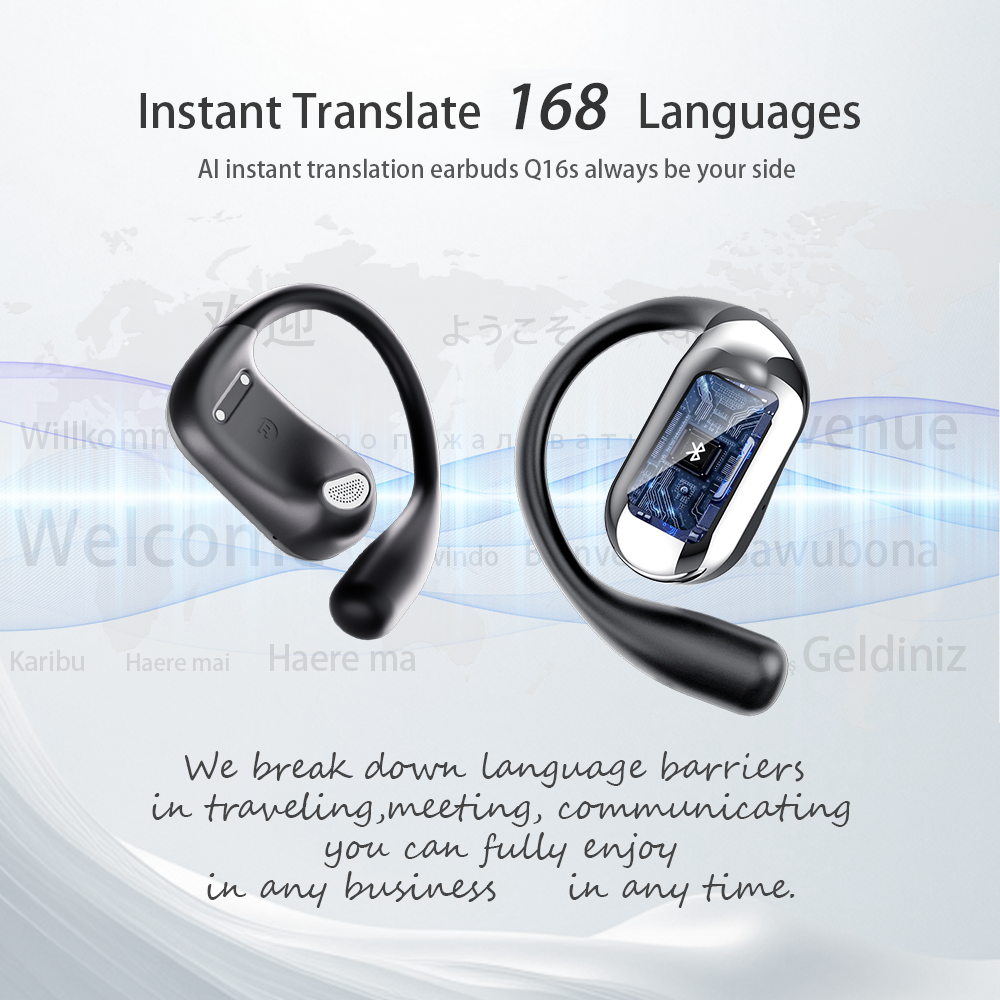 168 Languages Instant Translation: AI Q16s Translation Earbuds Real Time support 168 languages, AI translation earbuds Bluetooth hands-free design enables more natural communication, no need for manual operation, more prompt and rapid response, you can use the translation function conveniently while walking, conversing, even exercising.